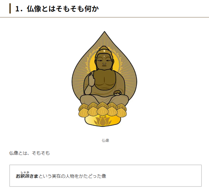 仏教とは仏(ブッダ)を拝む宗教であり、寺に置かれている仏像はブッダ=釈迦を像にしているわけですね。